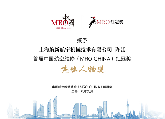 [喜报]上海尊龙官方许张荣获首届中国航空维修(MRO CHINA)红冠奖之“优异人物奖”